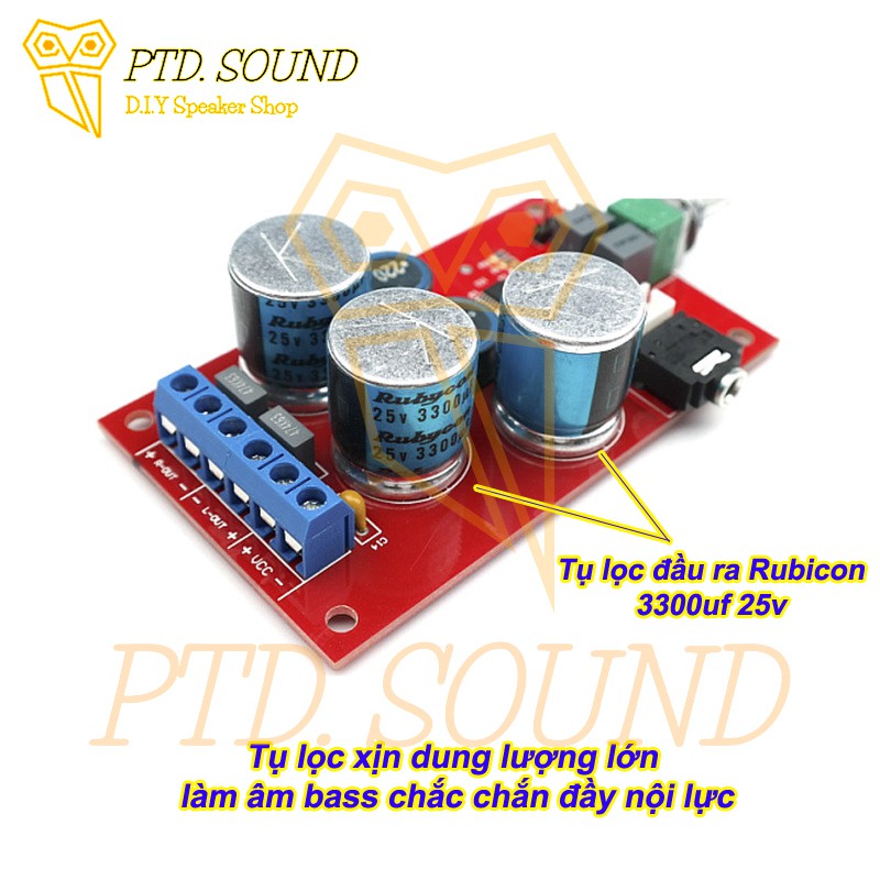 - Các tụ ghép đầu ra sử dụng tụ điện dung lượng lớn Rubicon 3300uf / 25V giúp âm bass mạnh mẽ, không bị hụt.