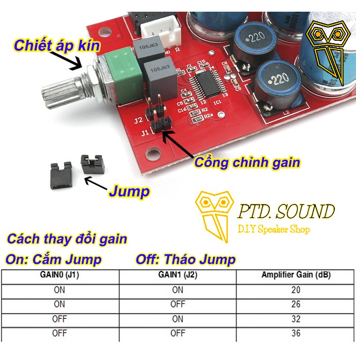 - Mạch tích hợp cổng chỉnh gain khuếch đại âm thanh ( gain lớn thì tiếng lớn nhưng chất lượng âm thanh giảm)