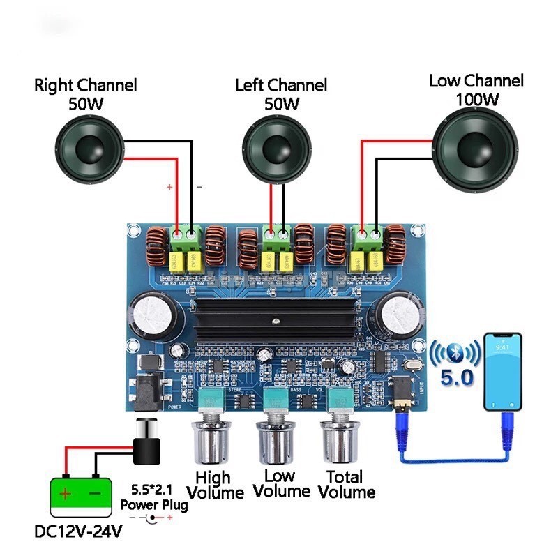 Giới thiệu Mạch khuếch đại Bluetooth XH-A305 2.1 50Wx2 + 100W TPA3116