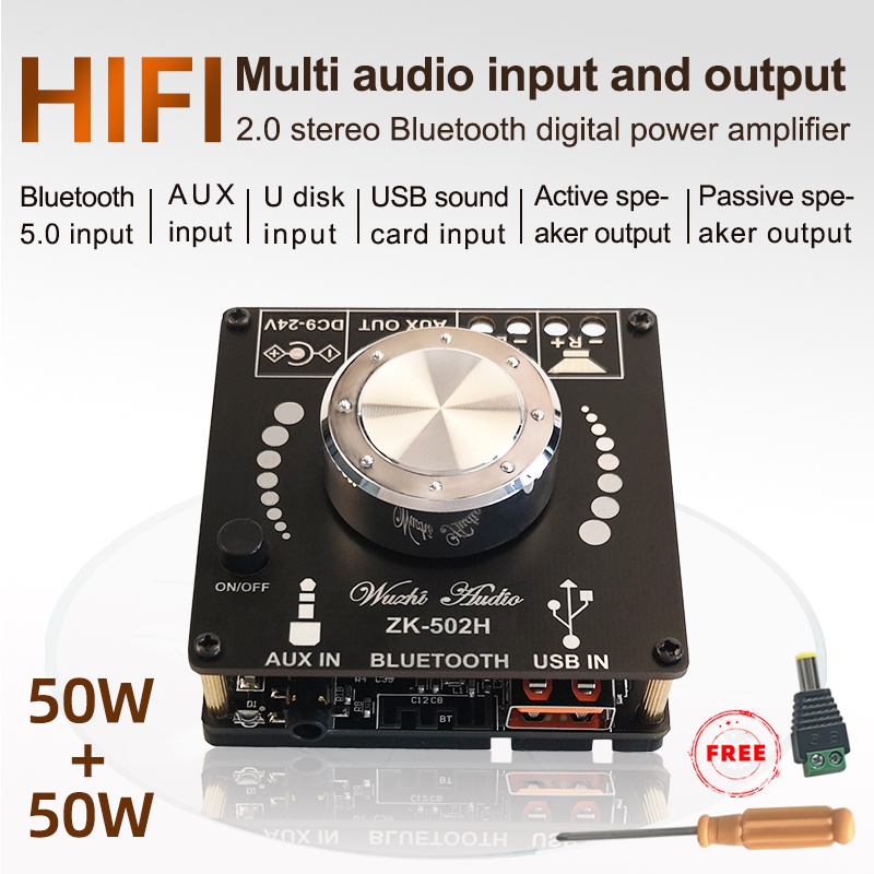 Giới thiệu Mạch khuếch đại công suất 2.0 wuzhi ZK 502H, công suất 100W, bluetooth 5.0, aux in, aux out