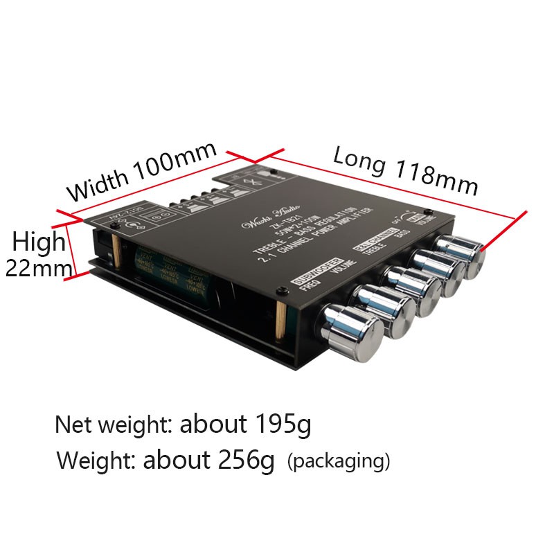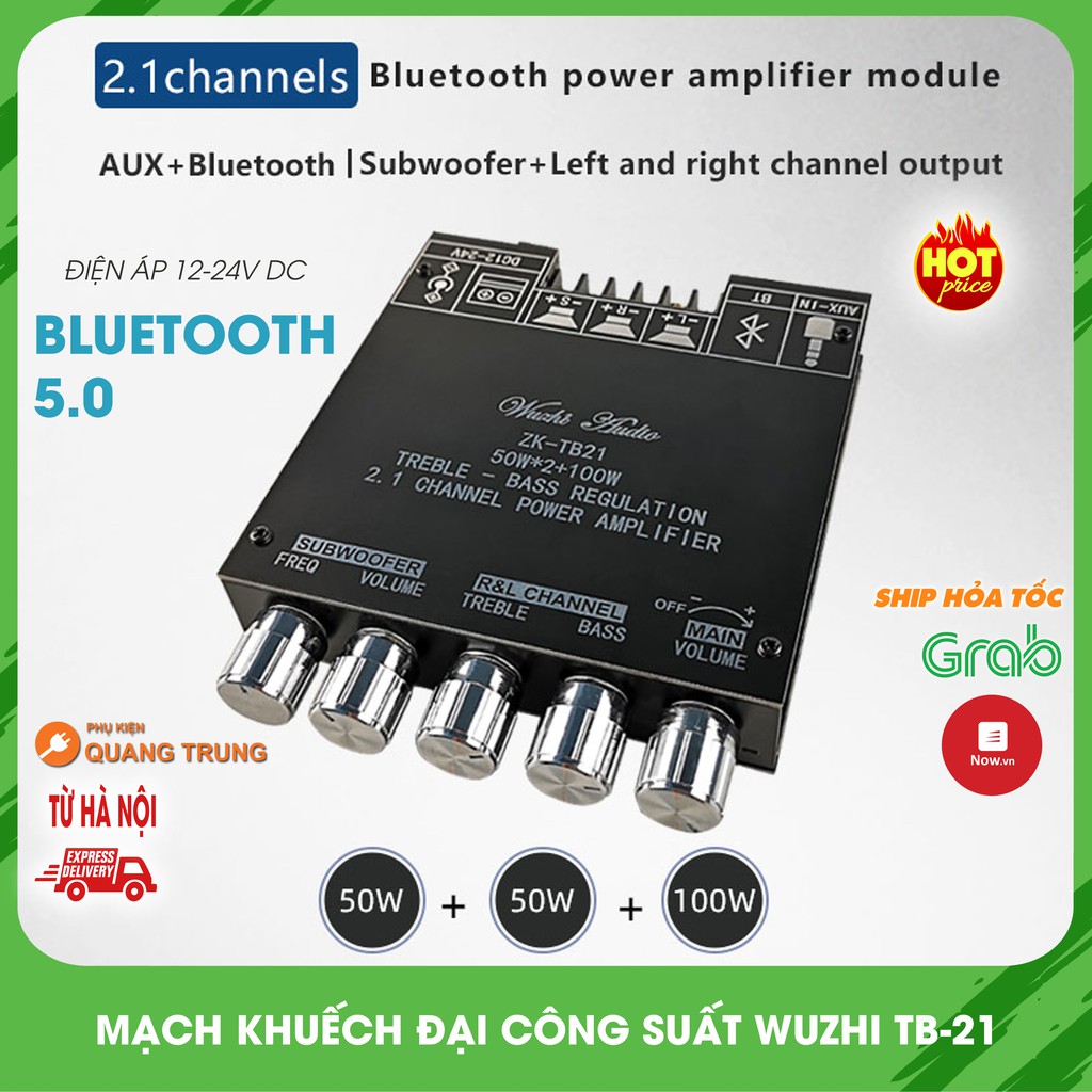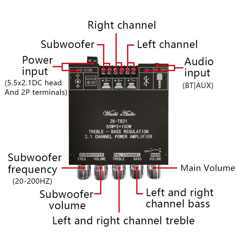 Mạch khuếch đại công suất Wuzhi TB-21,khuếch đại 2.1 kênh, có bluetooth 5.0 dành cho anh em chế loa 2.1