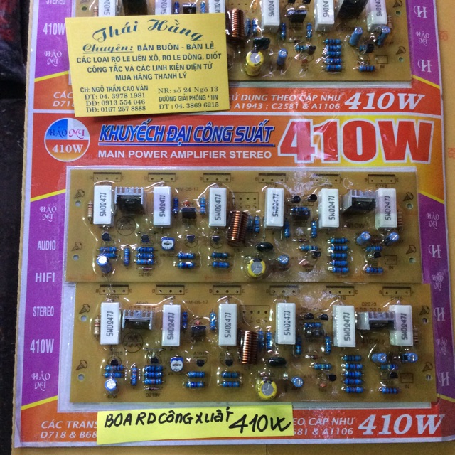 Là bo mạch khuếch đại cho âm thanh vối công xuất 410 wCác đèn tran sito phải sủ dụng theo cặp (như ảnh chụp )