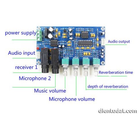Điều chỉnh được âm lượng nhạc, âm lượng micro, echo bằng chiết áp trên mạch