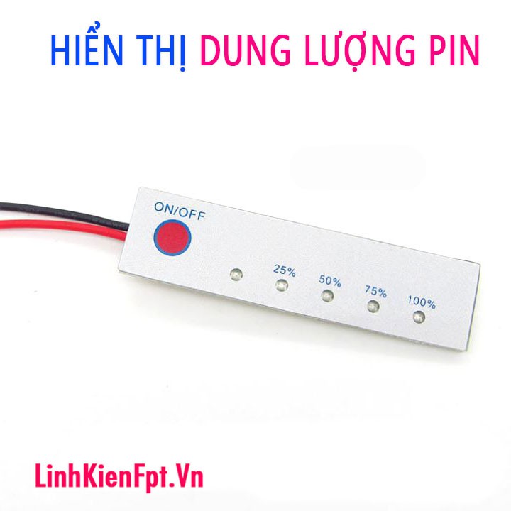 Kích hoạt hiển thị dung lượng pin bằng cách nhấn giữ nút màu đỏ, mỗi lần kích hoạt tiêu tốn khoảng 30mA.