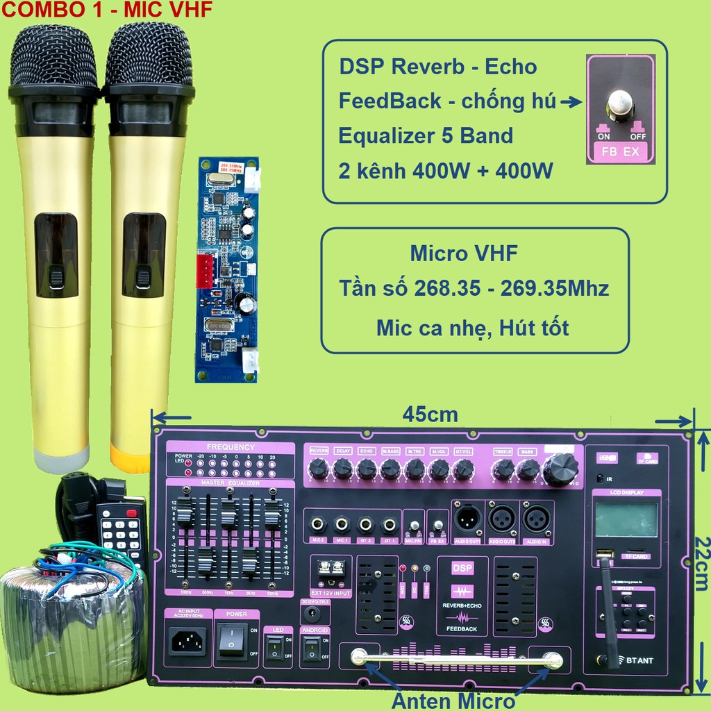 Mạch loa kéo 2 kênh chống hú kèm Micro Equalizer 5 Band loa kéo 4 tấc đôi, 5 tấc đôi, 6 tấc đôiCombo bao gồm các linh kiện: Combo 1 và Combo 2 khác nhau về Micro