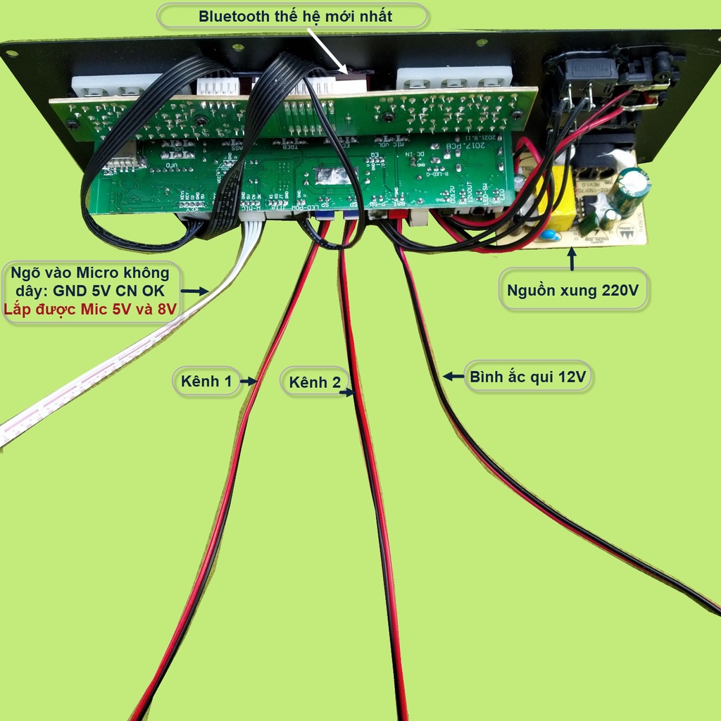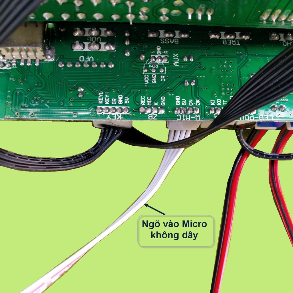 - Ngõ vào Micro không dây: OK CN +5V GND. Sử dụng cho Micro 5V và 8V
