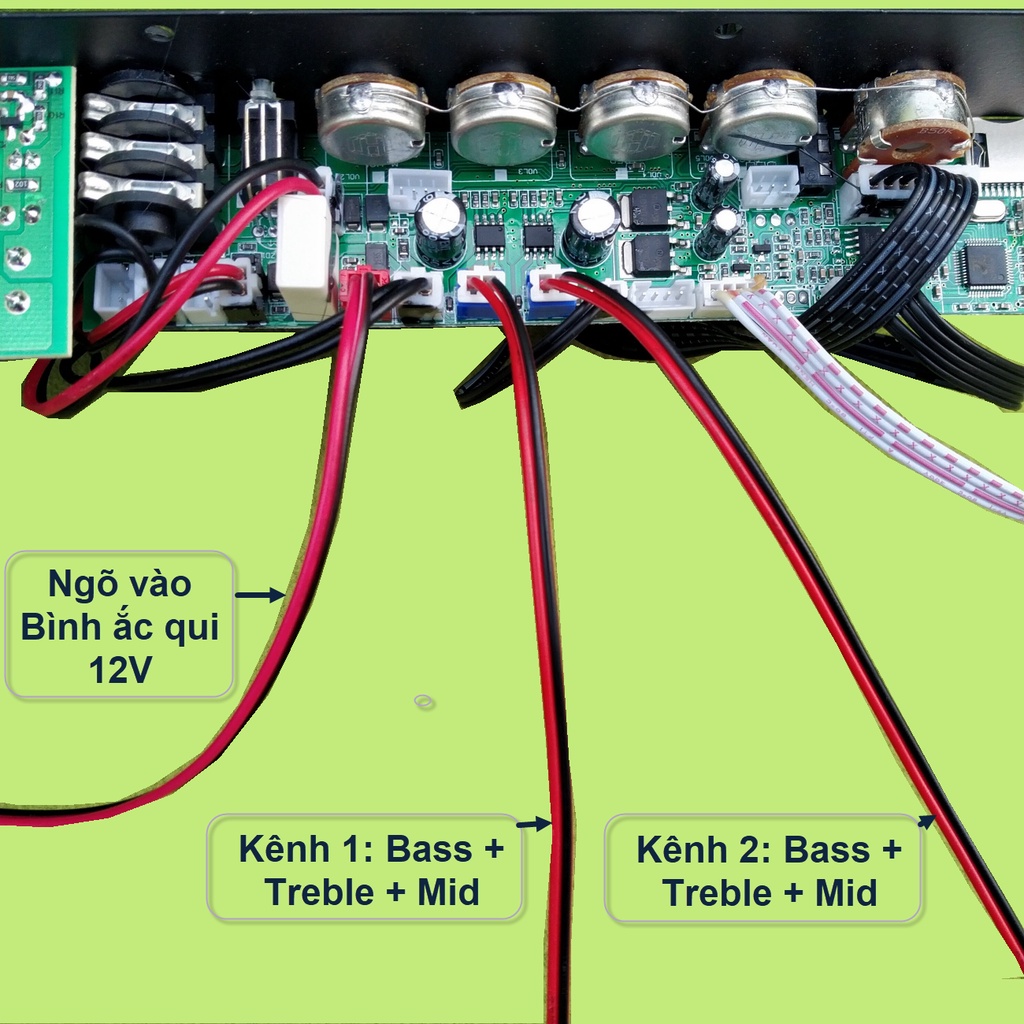 - Ngõ ra có 2 kênh loa độc lập: Kênh 1: Bass 2.5 tấc hoặc 2 tấc + 1 Treble + 1 Mid. Kênh 2: Tương tự