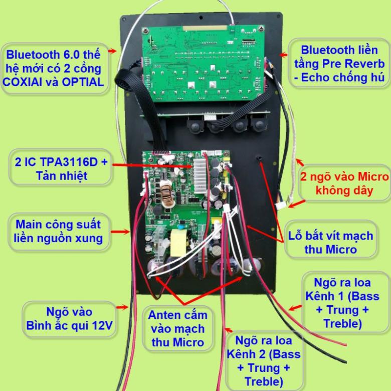 Thiết Bị Âm Thanh > Micro thu âm || Mạch loa kéo 2 kênh riêng biệt Reverb Echo chống hú 2 IC TPA3116D2 150W + 150W cho loa kéo 4 tấc đôi - mạch đứngCòn hàng