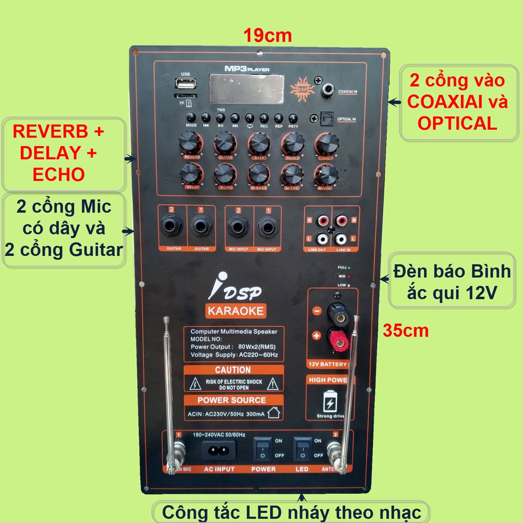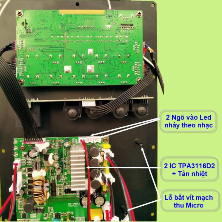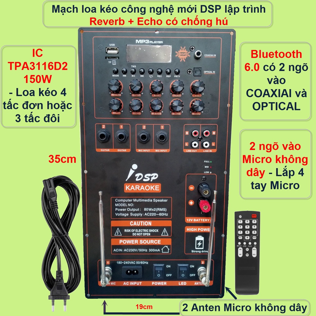 - Ngõ ra 2 kênh độc lập sử dụng 2 IC TPA3116D2 phù hợp loa kéo 4 tấc đôi
