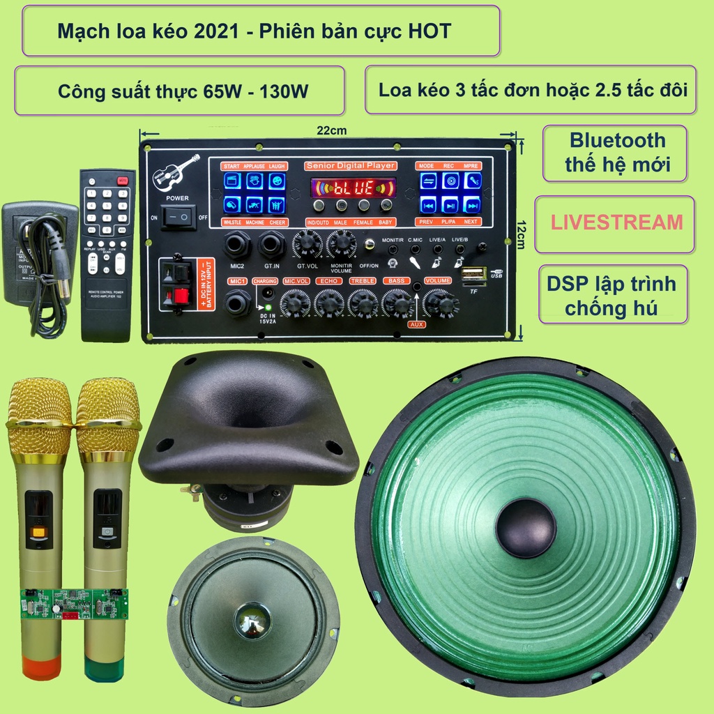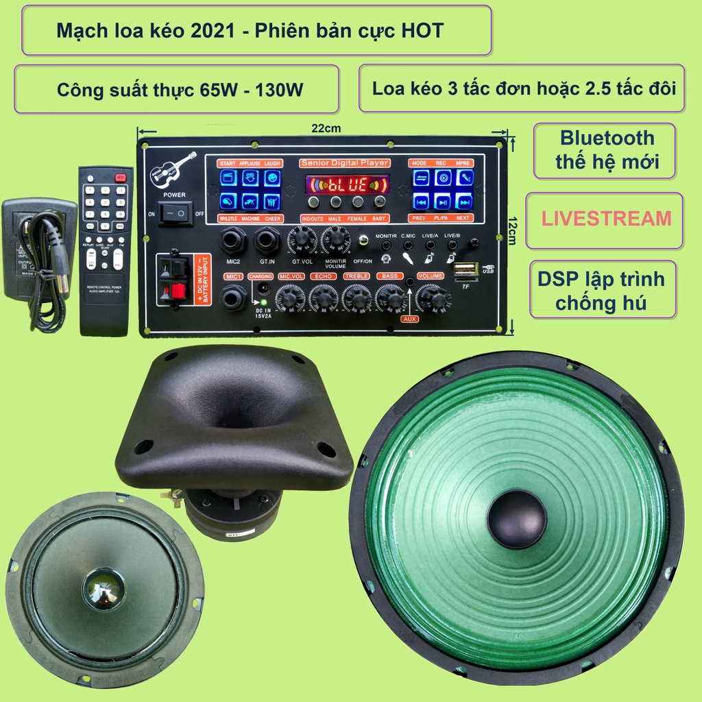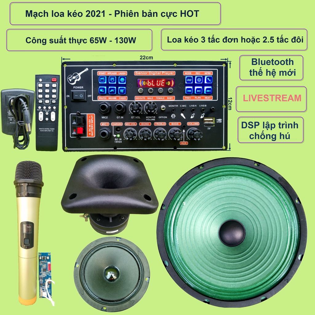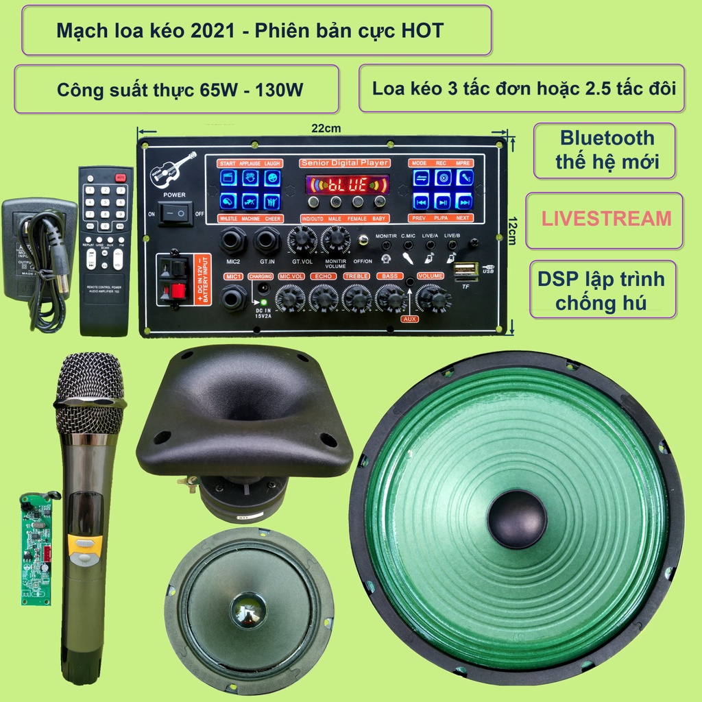 Giới thiệu Mạch loa kéo 3 tấc đơn 3 đường tiếng LIVESTREAM DSP lập trình chống hú IC MD9840 công suất 130W