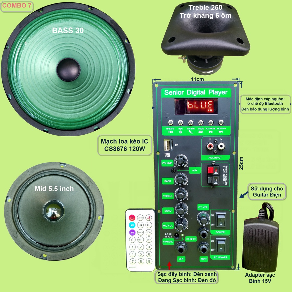 Combo 7: 1 mạch loa kéo CS8676 + 1 loa Bass 3 tấc + 1 loa Mid (Ko có Mic)