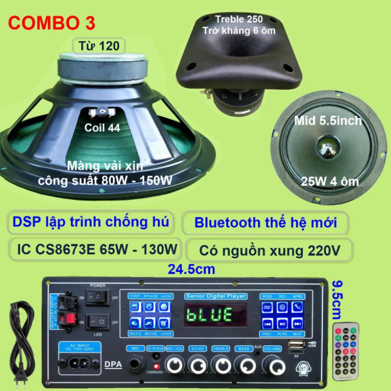 Mạch loa kéo 3 tấc đơn 3 đường tiếng DSP lập trình chống hú IC CS8673E 130W có nguồn xung 220V micro đơn