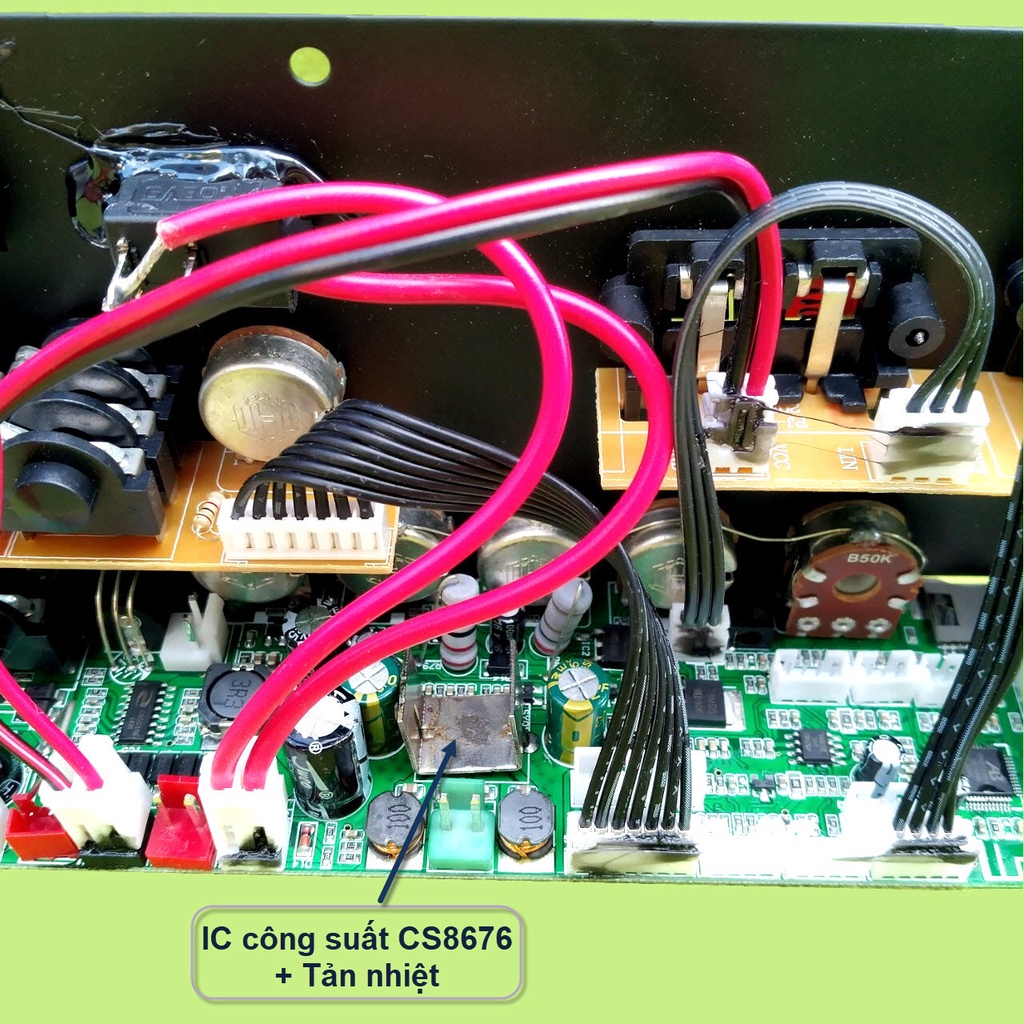 - Ngõ ra Mono, có công suất 45W – 90W sử dụng IC CS8676E chuyên dùng cho loa kéo 3 tấc đơn hoặc 2 tấc đôi