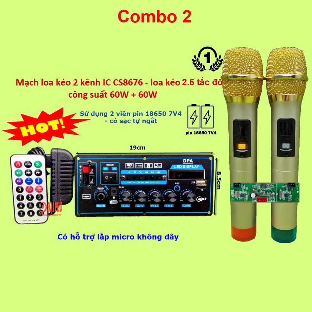 [Mã 155ELSALE giảm 7% đơn 300K] Mạch loa kéo CS8676 pin 7V4 kèm micro loa kéo 2.5 tấc đôi