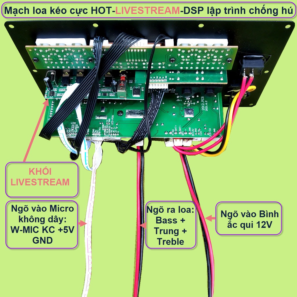 Sản phẩm có chức năng LIVESTREAM, DSP lập trình chống hú. Sử dụng IC công suất MD9840 cho âm thanh hay, đánh mạnh. Chất lượng sản phẩm sẽ được test qua video. Trải nghiệm thực tế để cảm nhận hết tất cả các chức năng và ứng dụng hay.