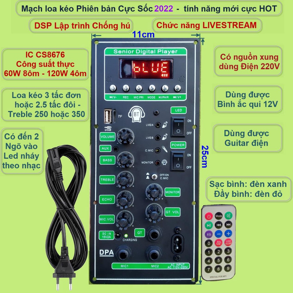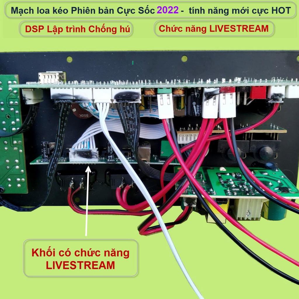 Sản phẩm có chức năng LIVESTREAM, DSP lập trình chống hú. Sử dụng IC công suất CS8676 cho âm thanh hay, đánh mạnh. Chất lượng sản phẩm sẽ được test qua video. Trải nghiệm thực tế để cảm nhận hết tất cả các chức năng và ứng dụng hay.