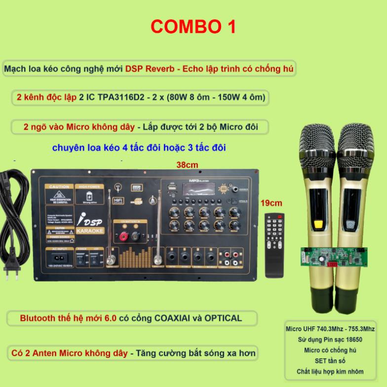Máy tính & Laptop > Linh Kiện Máy Tính > Bo Mạch Âm Thanh || Mạch loa kéo Reverb 2 kênh độc lập 2 IC TPA3116D2 150W + 150W cho loa kéo 4 tấc đôi hoặc 3 tấc đôi kèm micro đôiCòn hàng