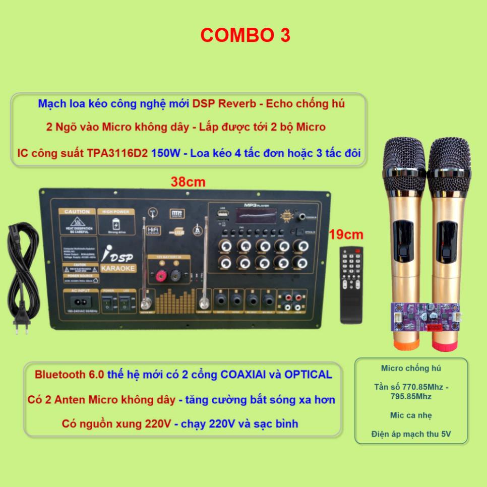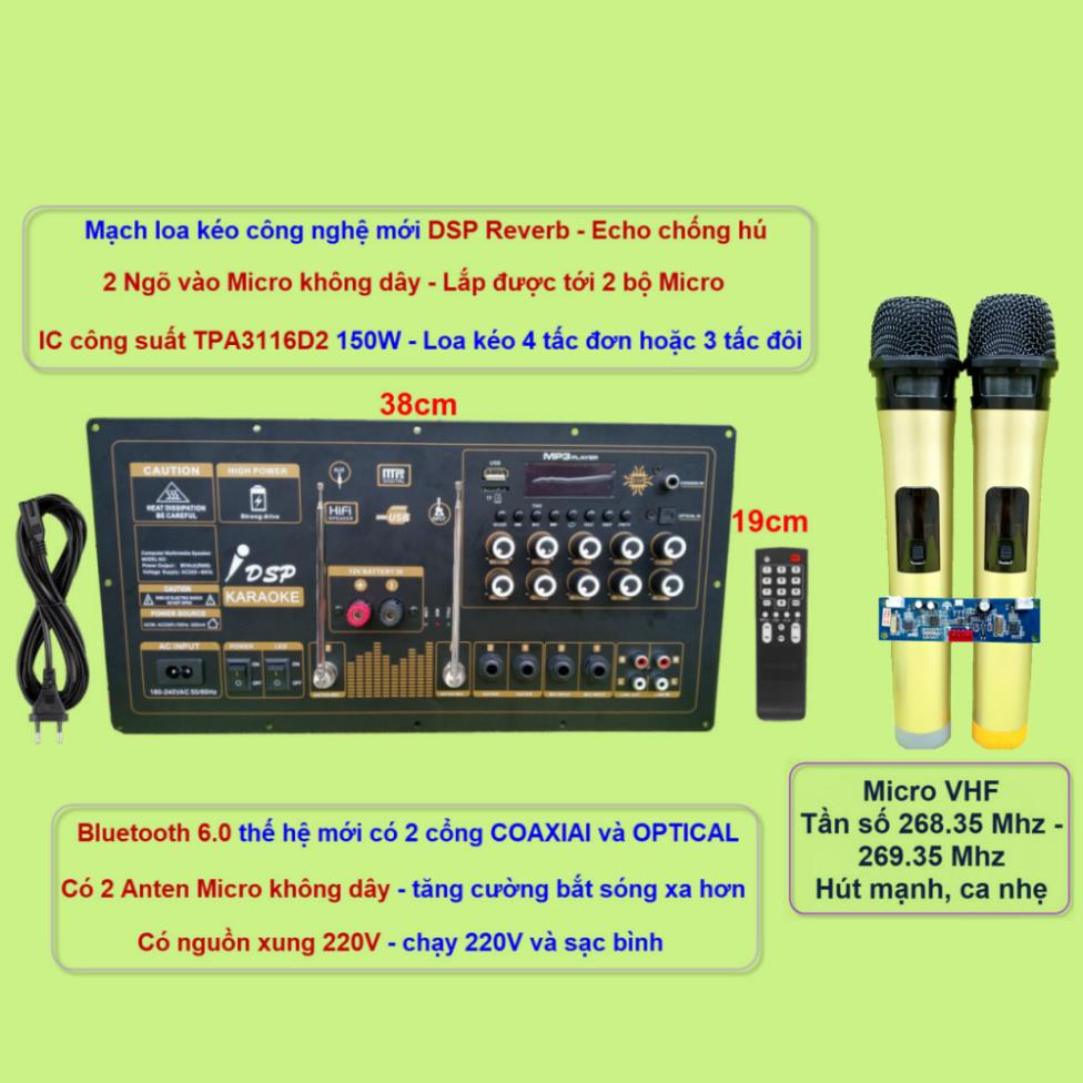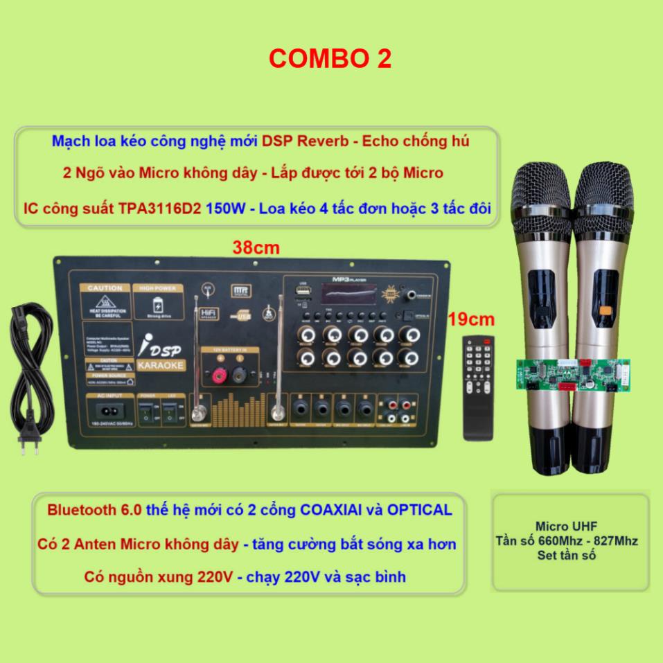 Mạch loa kéo Reverb chống hú IC TPA3116D2 150W cho loa kéo 2 ngõ vào Micro không dây kèm 1 bộ micro