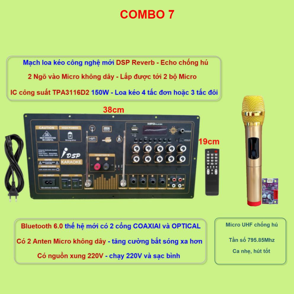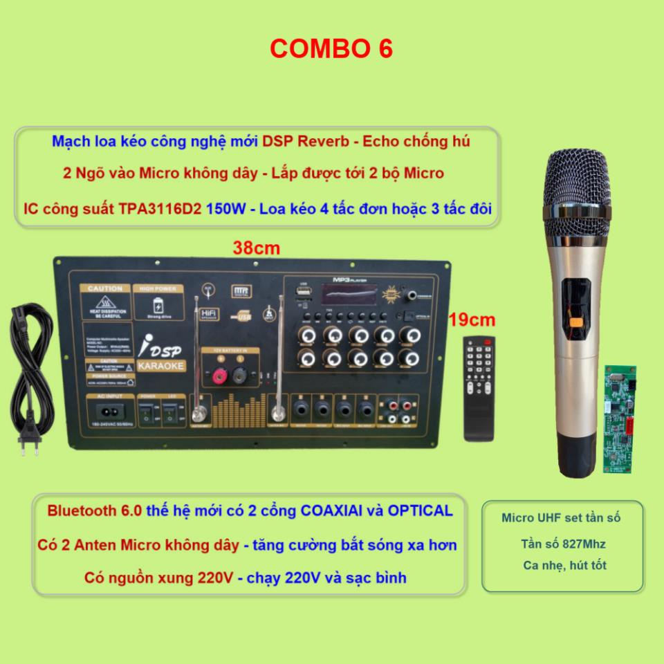 Các combo chỉ khác nhau về bộ MicroCombo 1 -Mic UHF chống hú Pin 18650