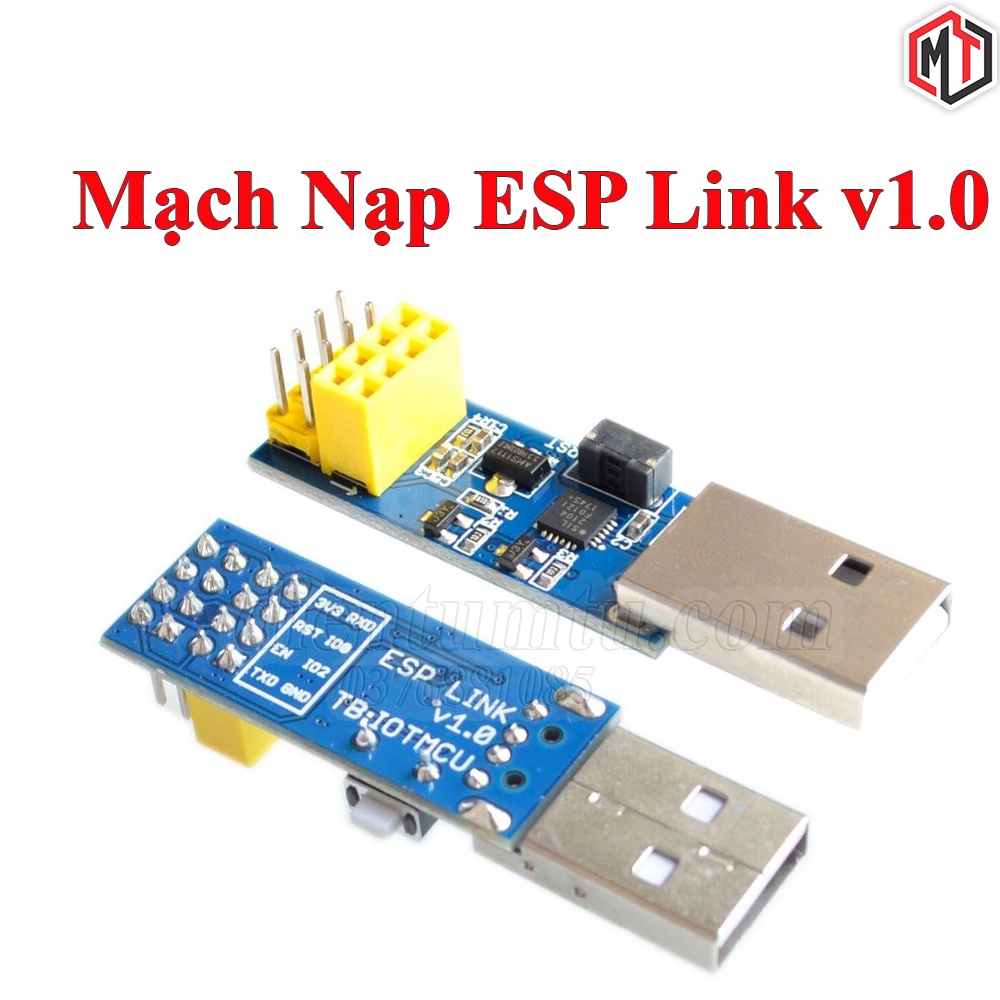 Mạch Nạp ESP Link v1.0 được sử dụng với mạch ESP-01 và ESP-01S giúp giao tiếp mạch với máy tính thông qua cổng USB để nạp chương trình hoặc truyền dữ liệu thông qua IC chuyển đổi USB-UART CP2012 tích hợp trên mạch, mạch được tích hợp nút nhấn Reset, cổng ra chân của ESP-01/ESP-01S giúp thao tác nạp chương trình 1 cách dễ dàng.Thông số kỹ thuật: