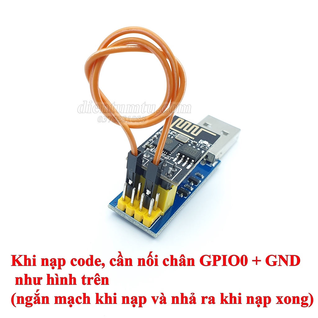 Lưu ý khi nạp chương trình cho ESP8266 ESP-01/ESP-01S cần nối chân GPIO0 (IO0) với GND như hình trên (ngắn mạch khi nạp và nhả ra khi nạp xong).