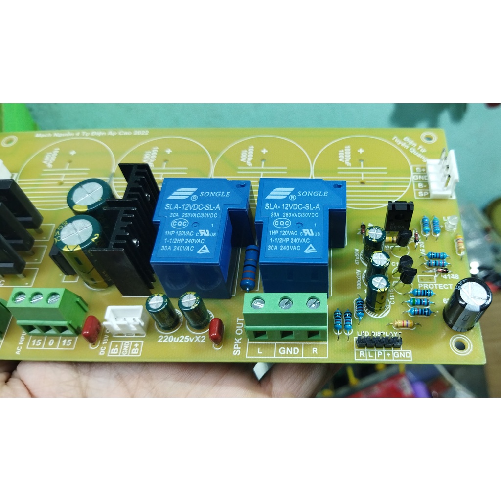 Đây là mạch nguồn 4 tụ chịu điện áp cho mạch công suất cao nhất hiện nay, dải điện áp nguồn chính từ 30V đối xứng tới 80V đối xứng VAC. Khi chọn tụ lọc các bạn hãy chọn tụ nguồn có điện áp lớn hơn điện áp nguồn vào 1,4 lần + 10V.