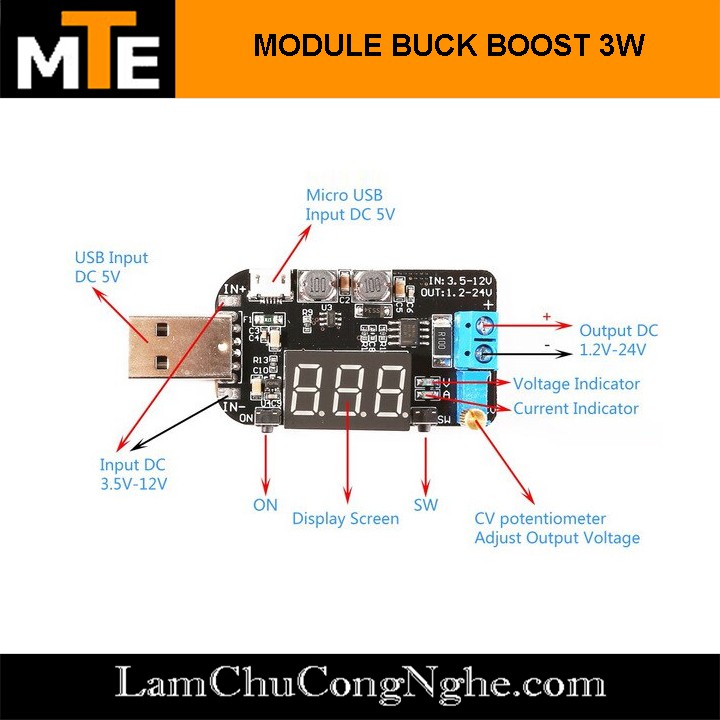 Máy tính & Laptop > Linh Kiện Máy Tính > Nguồn Máy Tính || Mạch nguồn đa năng cắm USB cho đầu ra từ 1,2V đến 24V 3W - Module nguồn buck boostCòn hàng