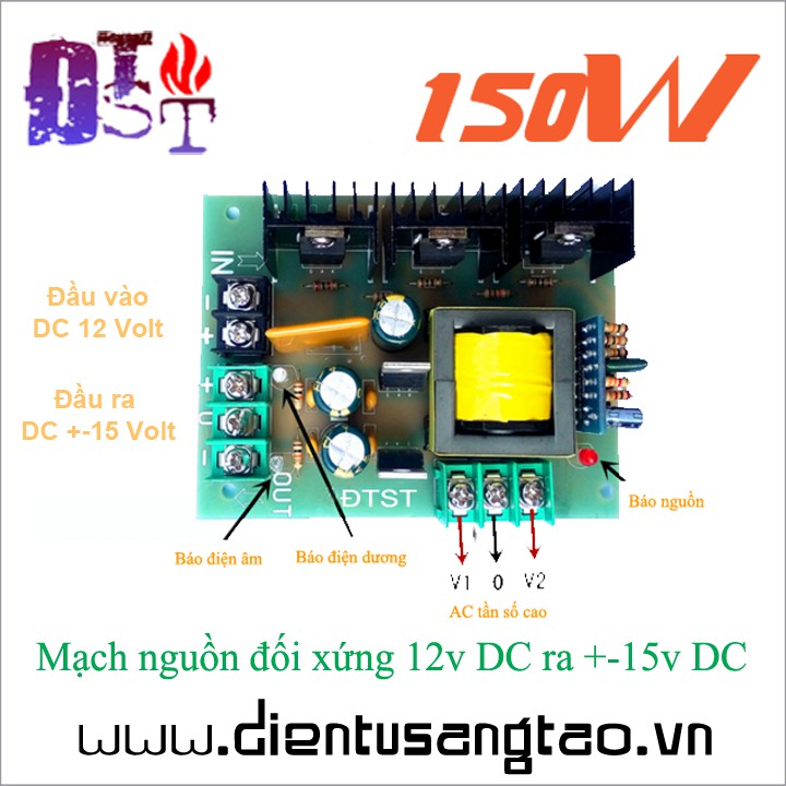 Mạch nguồn đối xứng 12v DC ra +-15v DC