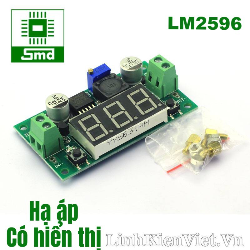 1.Mạch nguồn hạ áp 3A LM2596 Màn hình Led đo áp, Mạch ổn áp 3A 5V 9V 12V Giảm áp từ 1.25 - 40V