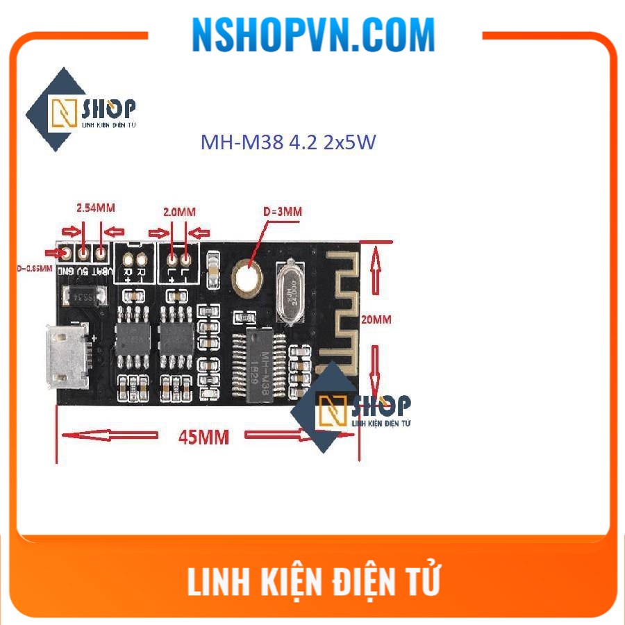 Mạch âm thanh Bluetooth 4.2 MH-M38 2x5W hỗ trợ công nghệ kết nối tự động Bluetooth, hỗ trợ giải mã không mất dữ liệu WAV / WMA / FLAC / APE / MP3, đầu ra kênh kép stereo.