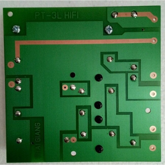 - Khi dùng cho loa có công suất lớn phải di thêm thiếc vào đường mạch không phủ màu xanh.