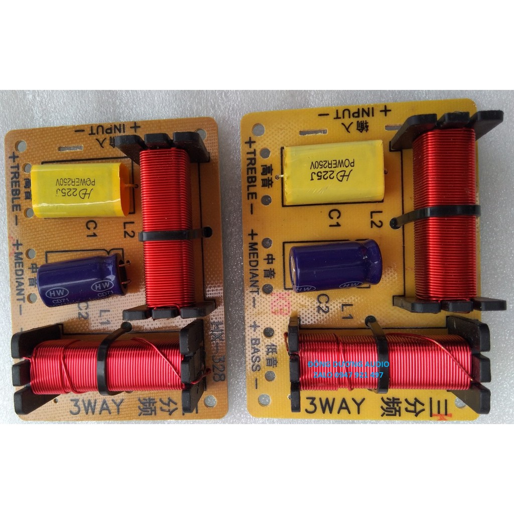 Mạch phân tần 3 đường tiếng HX328. với các cuộn cảm được làm bằng dây đồng đỏ 0.5li. chất lượng tốt.Giúp triệt tiêu các tín hiệu nhiễu tốt hơn, hoạt động liên tục trong thời gian dài không bị nóng, không méo tiếng.