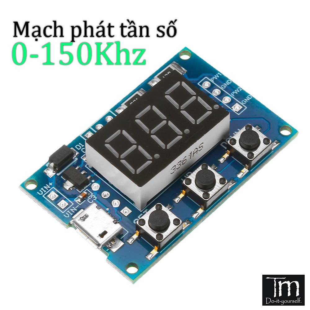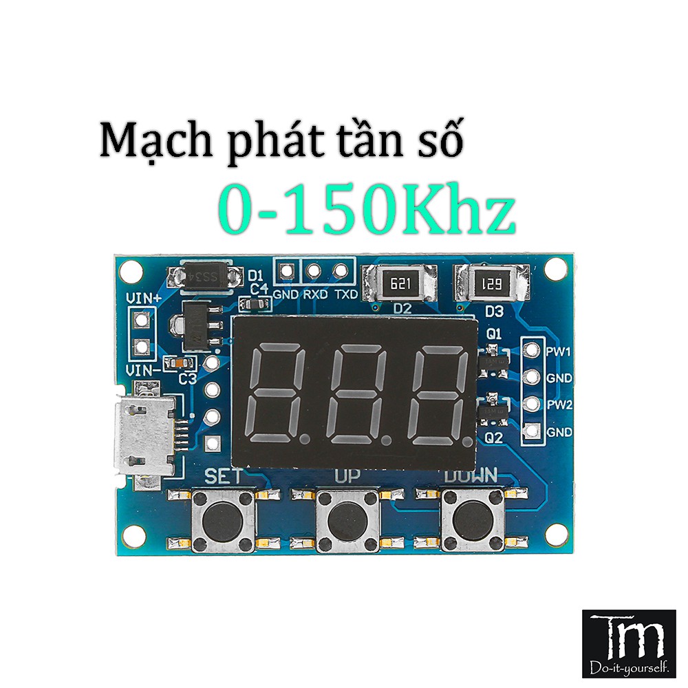 - Tích hợp 3 nút nhấn [Set], [Up], [Down] dùng để thiết lập tần số ngõ ra PWM1 & PWM2