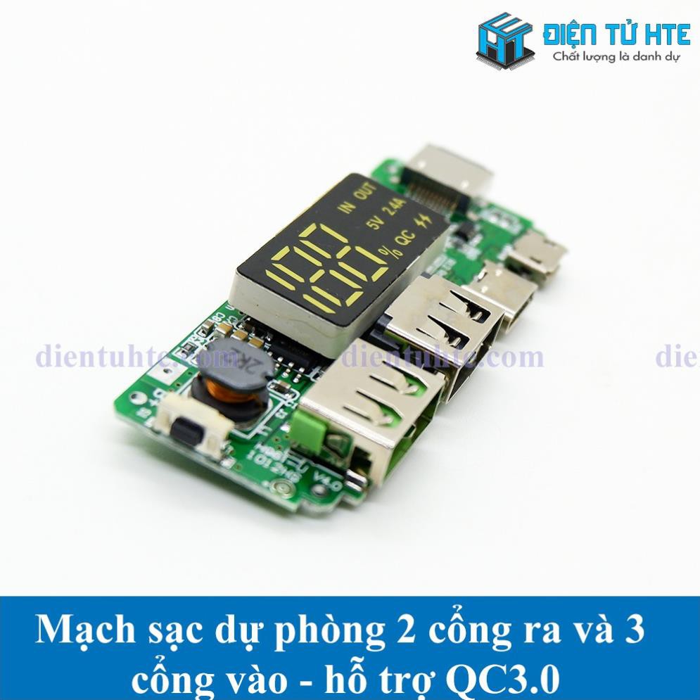 Mạch Pin dự phòng vào 3 cổng - ra 2 cổng 5V 2.4A hỗ trợ sạc nhanh QC [HTE Quy Nhơn CN2]