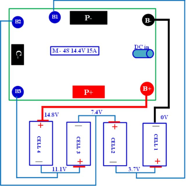 - Hàn theo thứ tự từ B- (0V), B1(3.7V), B2(7.4V), B3(11.1V) và B+ (14.4V).