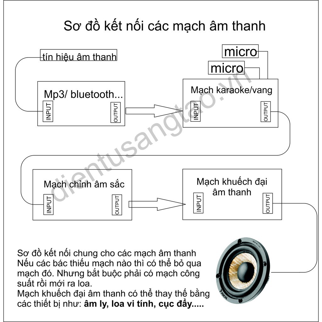 5. Với dây kết nối, vít đứng mic chiết áp.