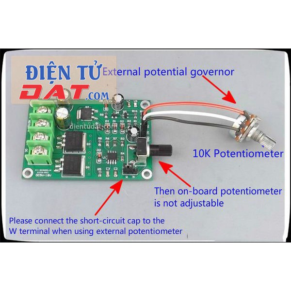 Mạch PWM điều khiển động cơ DC 5-18V 15A có chức năng điều khiển tốc độ động cơ DC bằng phương pháp điều roojgn xung PWM với dải điện áp ngõ vào từ 5 -18V dòng tải tối đa lên đến 15A.Mạch sử dụng chiết áp tích hợp trên mạch để điều chỉnh tốc độ động cơ. Ngoài ra, mạch cũng được thiết kế với chức năng điều khiển bằng chiết áp ngoài hoặc bằng tín hiệu PWM từ 0 - 5V phù hợp với nhiều ứng dụng khác nhau.