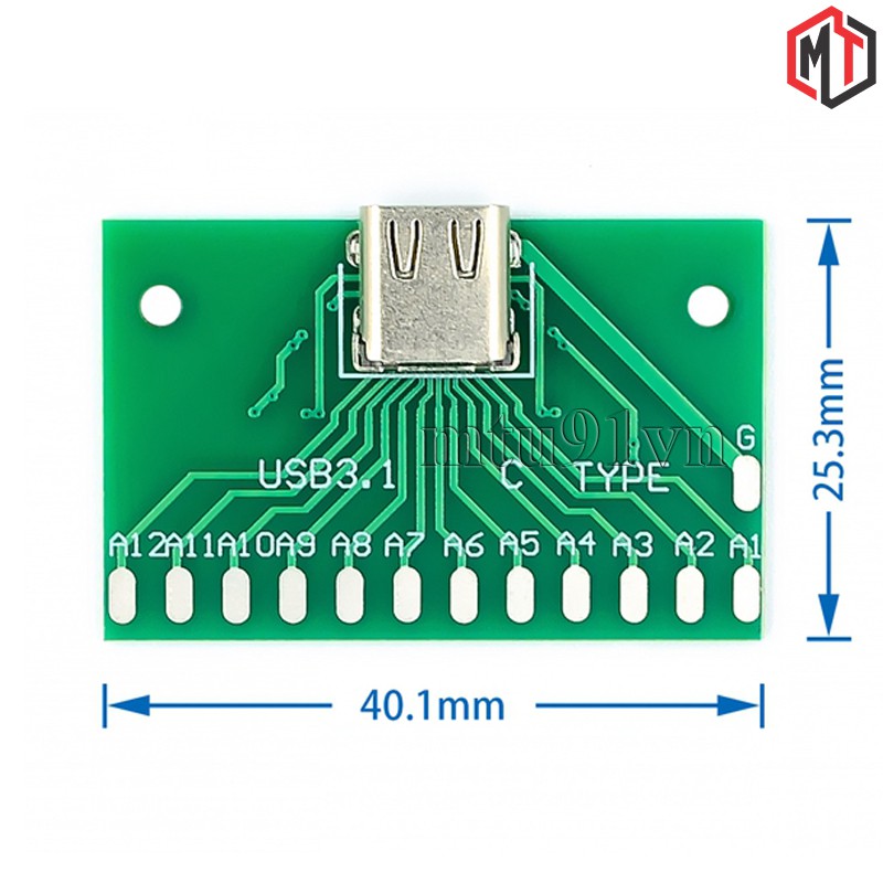 Giới thiệu Mạch Ra Chân (hàn) Cổng USB 3.1 Type C Sang Dip 24pin