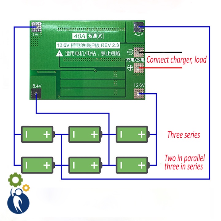 - Theo đúng hệ thống dây điện của sơ đồ 0V, 4.2V, 8.4V, 12.6V, không cố tình đoản mạch.