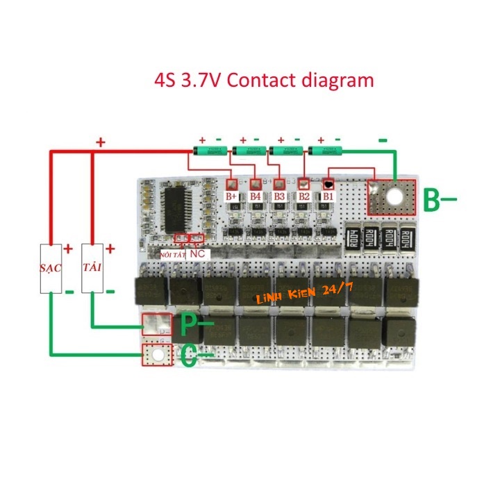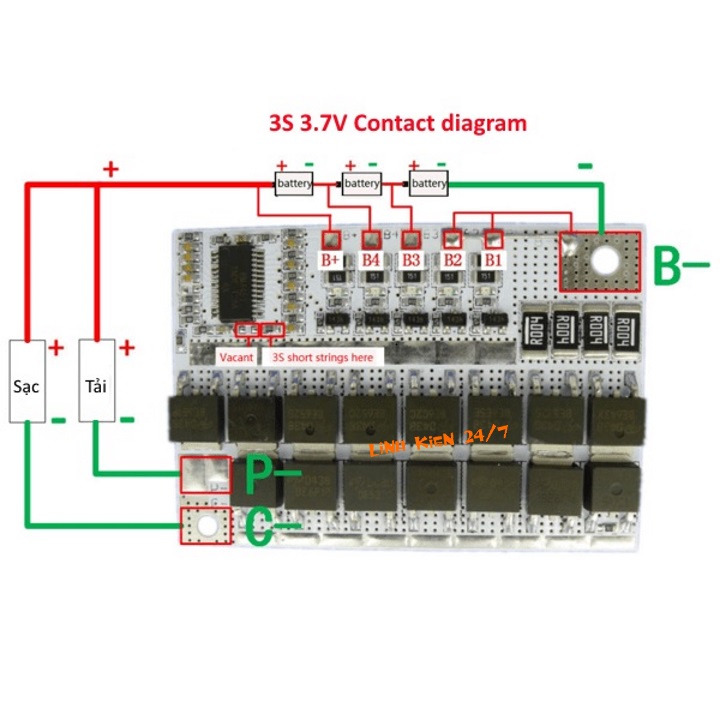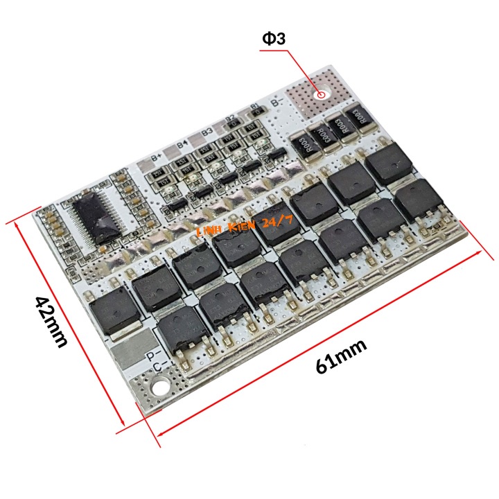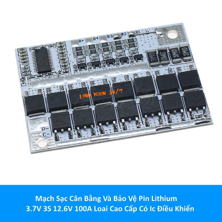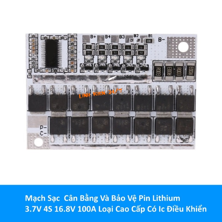 - Mạch sạc cân bằng và bảo vệ pin lithium 3.7V 3S 12.6V,4S 16.8V 100A loại cao cấp có ic điều khiển là mạch có hiệu suất ổn định, hỗ trợ bảo vệ ngắt kết nối, bảo vệ quá dòng, bảo vệ quá tải,...- Mạch sạc và bảo vệ pin 12.6V 3S.4S với dòng xả lên tới 100a, điện áp trung bình 3.7V sử dụng để sạc , xả bảo vệ cho các loại pin nối liền cell như pin 18650 hay 26650... Mạch có tác dụng ngắt khi pin đầy, tránh hiện tượng quá tải, quá áp khi sạc hoặc xả pin lithium.