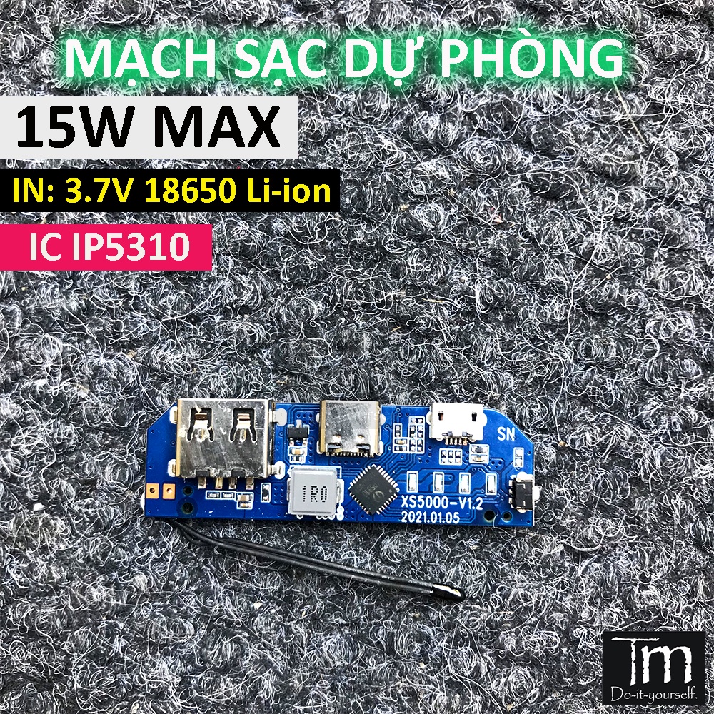 Giới thiệu Mạch Sạc Dự Phòng 15W Chip IP5310 Mã XS5000