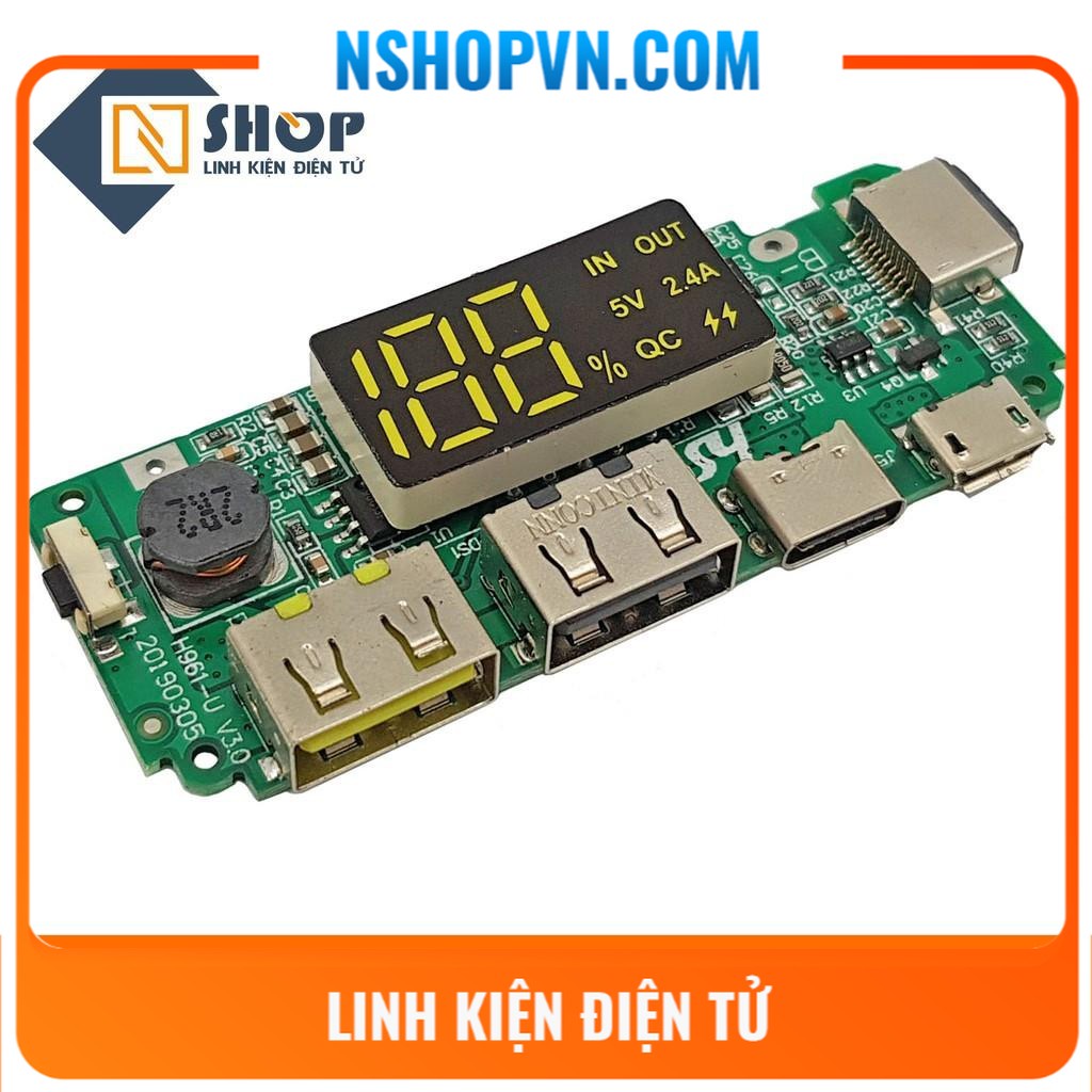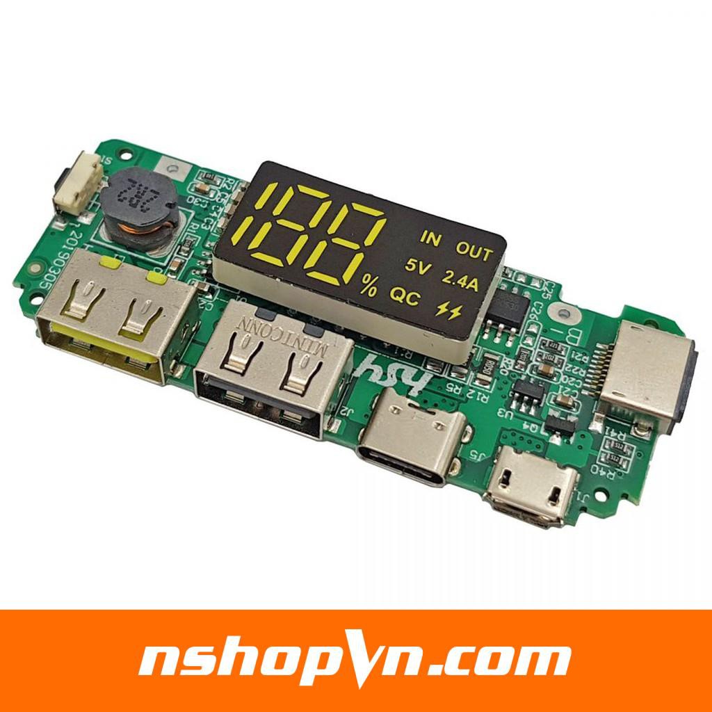 Mạch sạc dự phòng 2 cổng USB, Iphone, Micro USB và Type-C 5V 2.4A tích hợp sạc nhanh và led hiển thị thông số