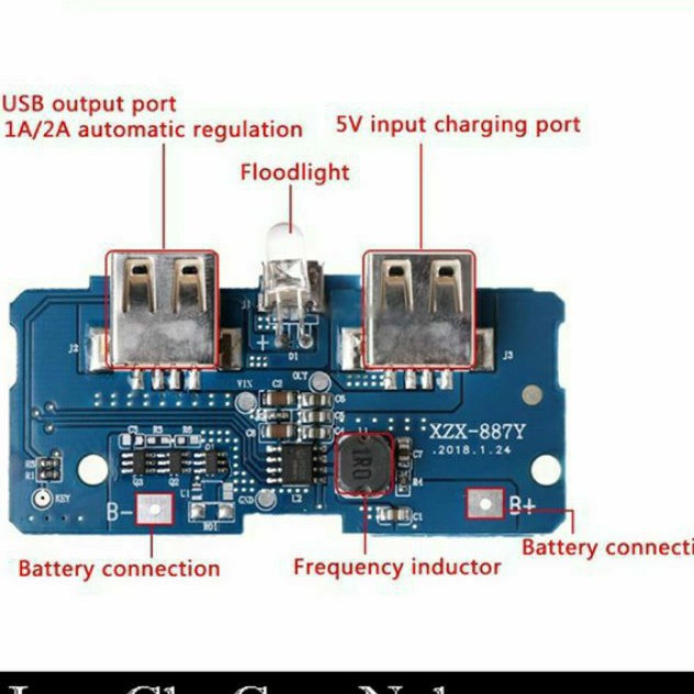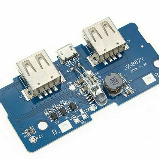 Mạch Sạc Dự Phòng 2 Ngõ ra USB được sử dụng thiết kế pin sạc dự phòng sử dụng pin 18650 mắc song song. Mạch được thiết kế với 1 ngõ sạc pin cổng micro USB và 2 ngõ ra dùng cho thiết bị với dòng tải tối đa 2A. Mạch được tích hợp cho giao diện trực quan. Ngoài ra mạch còn thiết kế thêm đèn Led chiếu sáng có thể dễ dàng tắt mở bằng nút nhấn trên mạch. Thông số kỹ thuật:+Điện áp đầu vào mạch: 5V 1A