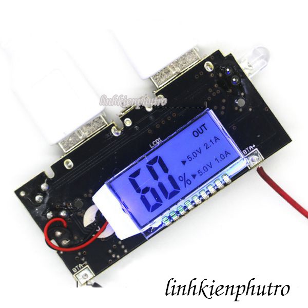 Mạch Sạc Dự Phòng 2 Ngõ ra USB Hiển Thị LCD