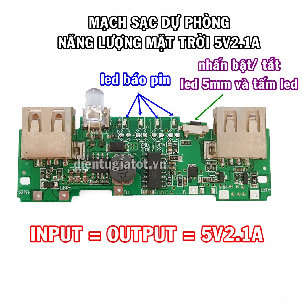 Giới thiệu Mạch sạc dự phòng 5 pin năng lượng mặt trời tốt 5V 2A