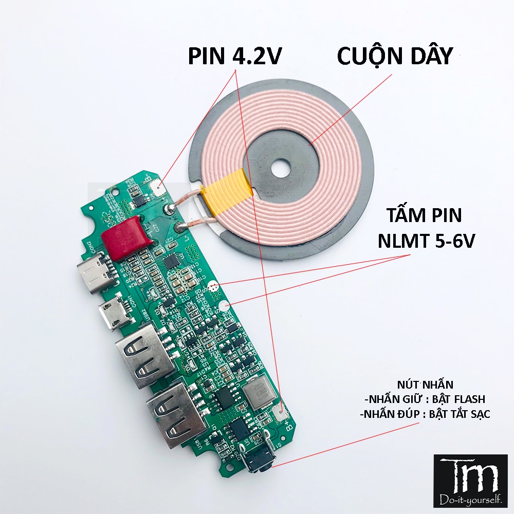 Mạch Sạc Dự Phòng Sạc Không Dây 3 Chức Năng - Hỗ Trợ Pin NLMT
