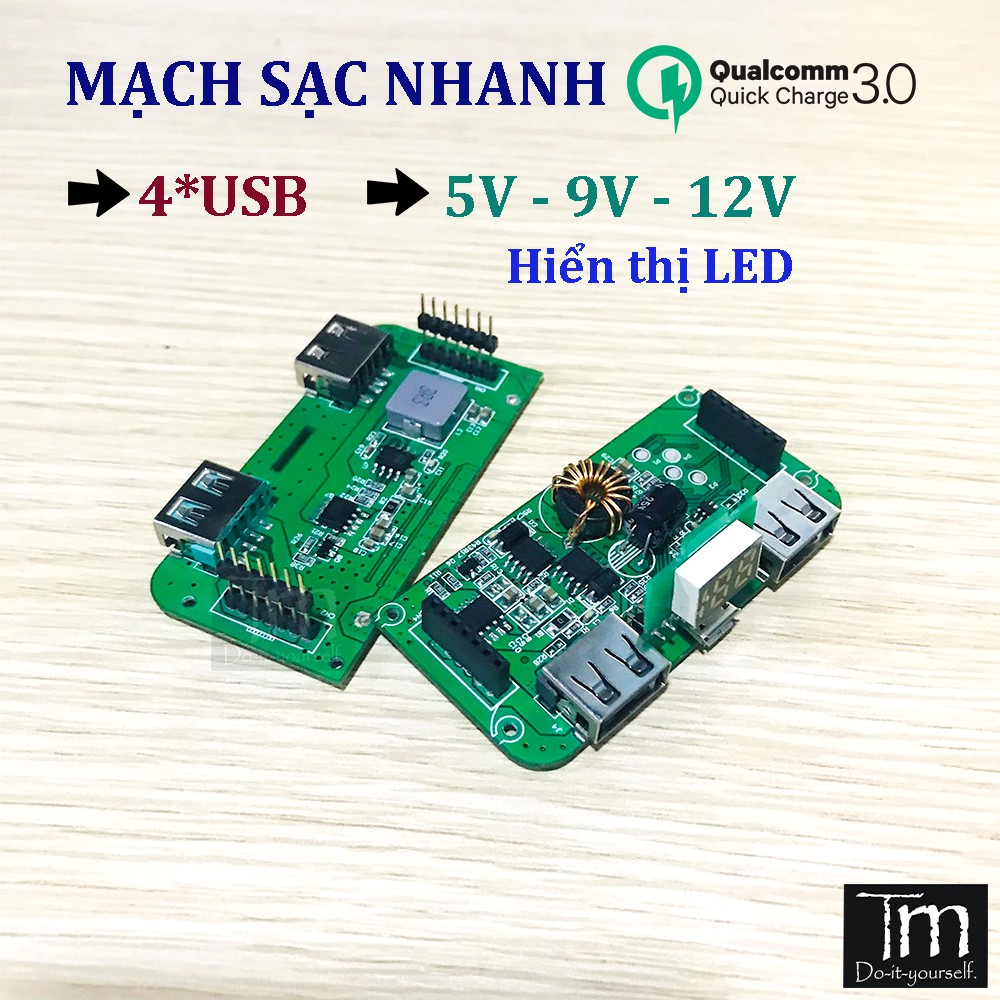 Giới thiệu Mạch Sạc Dự Phòng Sạc Nhanh QC3.0 4*USB Mạch 2 Lớp