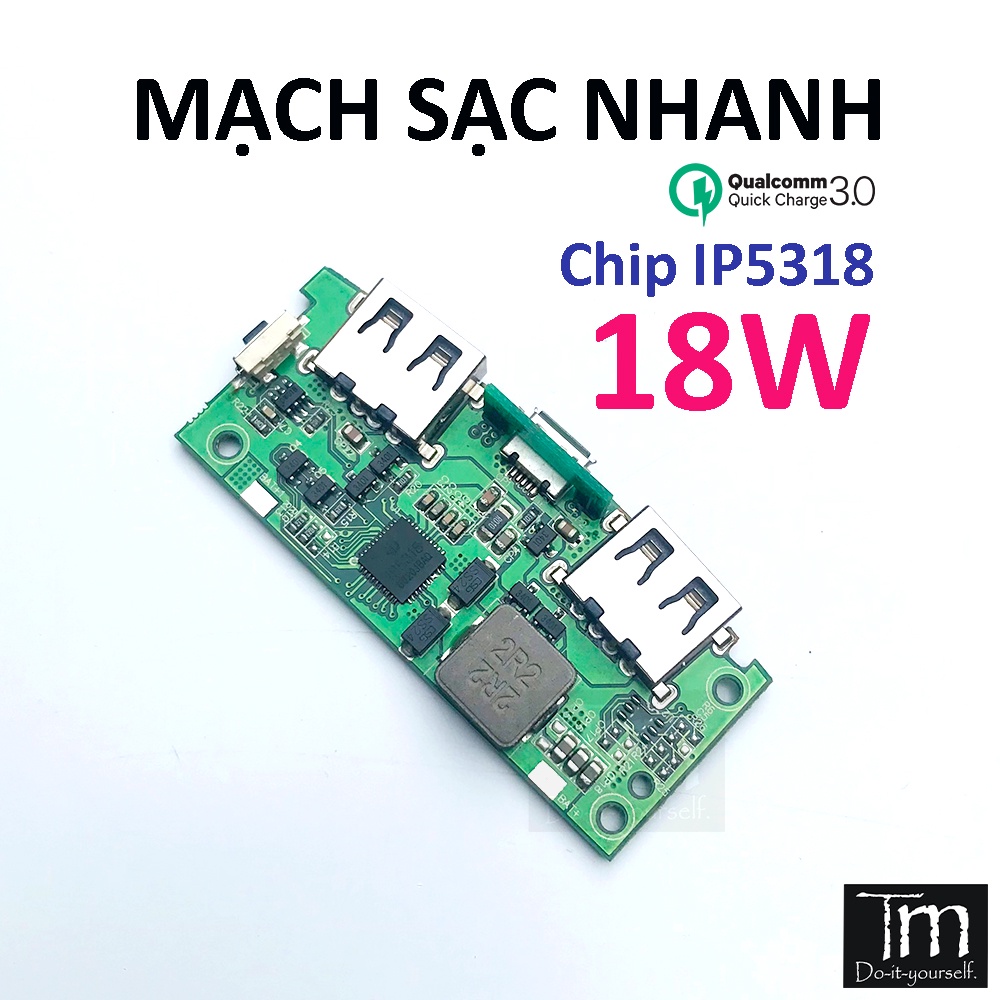 Giới thiệu Mạch Sạc Dự Phòng SẠC NHANH QC2.0 QC3.0 Chip IP5318 18W