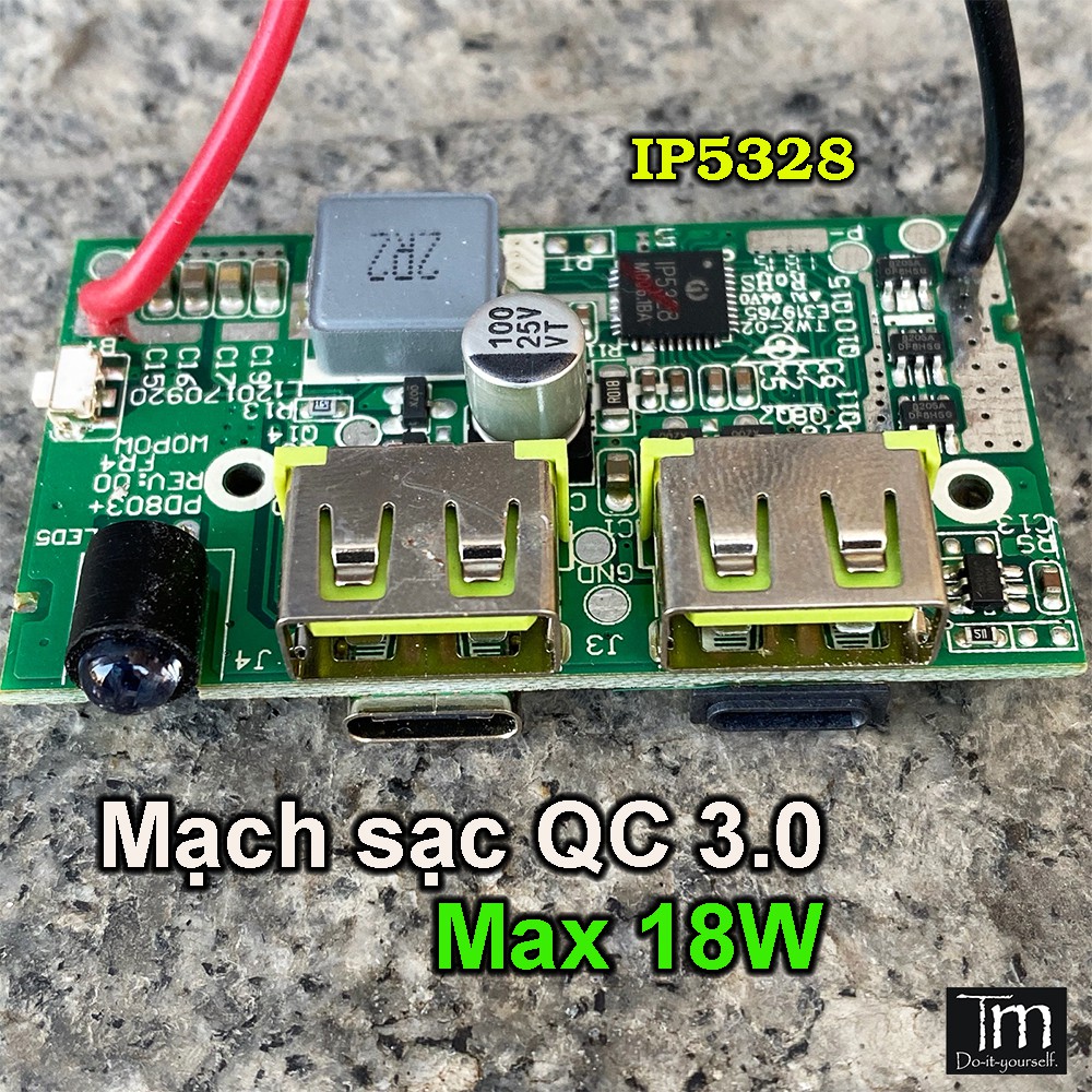 ➡ Mạch có sạc vào và ra đều là sạc nhanh, khách mua lưu ý chọn cáp loại tốt mới nhận sạc nhanh nhé, nhiều cáp đểu chỉ có 2 dây nên ko nhận sạc nhanh ạ