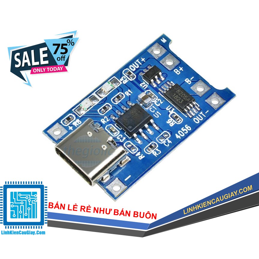 Mạch Sạc Pin 1 Cell 18650 Có Bảo Vệ TP4056 1A Type C